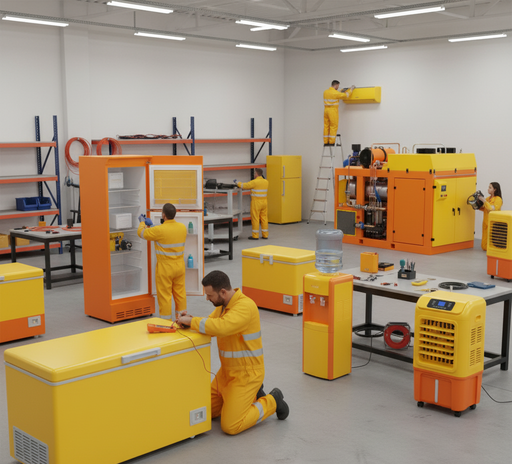 Professional cooling appliance repairs for AC, refrigerator, deep freezer, bottle cooler, water dispenser, and water cooler.